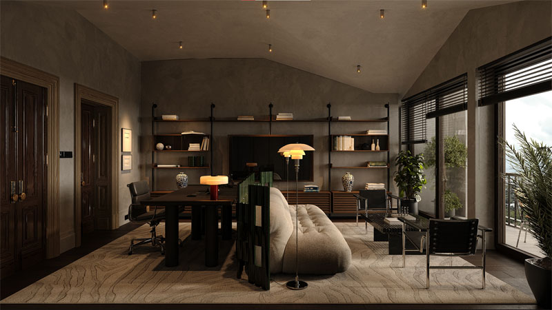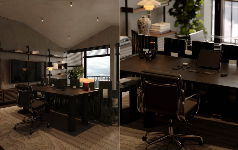 Thiết kế văn phòng tại nhà diện tích nhỏ 20m2 ứng dụng phong cách hiện đại kết hợp cùng bảng màu nâu trầm lịch lãm. Không gian dù không lớn nhưng vẫn cung cấp đầy đủ công năng cho một ngày làm việc năng suất.